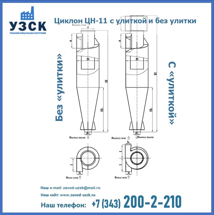 Циклоны ЦН-11 с улиткой и пирамидальным бункером