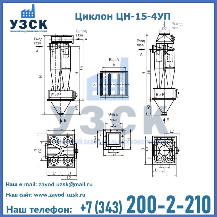 Завод «УЗСК» в Дзержинске предлагает большой выбор циклонов ЦН-15-900×4УП и прочих устройств, полностью укомплектованных и готовых к эксплуатации. Мы гарантируем соответствие оборудования всем требованиям ГОСТ и ТУ, износостойкость и высокую производительность предлагаемого оборудования. Уральский Завод Стальных Конструкций изготавливает и продает надежное, эффективное и производительное оборудование, имеющее длительную гарантию и большой эксплуатационный ресурс. Если требуется изготовить циклон нестандартных размеров, то такой вариант выполнения заказа тоже предусмотрен, так как предприятие имеет собственные производственные площади и надежных поставщиков. На все поставляемое или производимое оборудование имеются чертежи и прочая техническая документация. Заказать и купить циклоны или прочее оборудование высокого качества и по доступной цене можно через наш сайт или по указанному в разделе «Контакты» телефону.