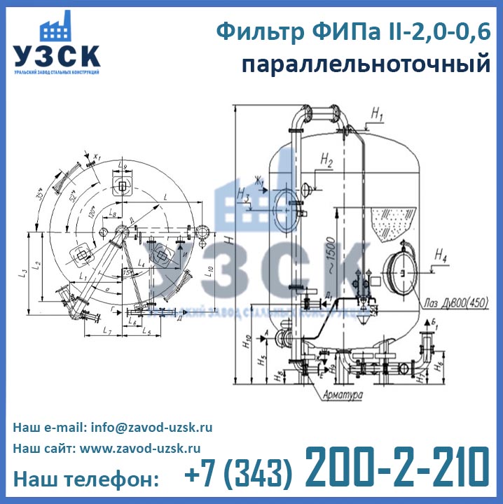 2,0 – диаметр корпуса фильтра 2 м (2000 мм)