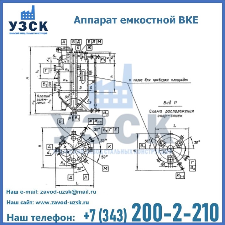 Емкостные аппараты ВКЭ представляют емкость с эллиптической крышей и коническим днищем. аппарат может использоваться в Дзержинске для приема и хранения жидкостей и взрыво- и пожароопасных веществ. Создаваемое давление не должно превышать 0,6; 1,0 МПа. Емкости ВКЭ выполняются как цельносварные. Используется марка стали, отвечающая степени агрессивности продукта и температуре эксплуатации.